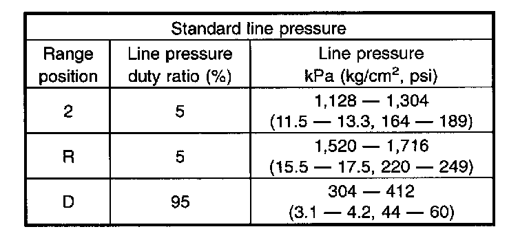 5) Check line pressure in accordance with the following chart.