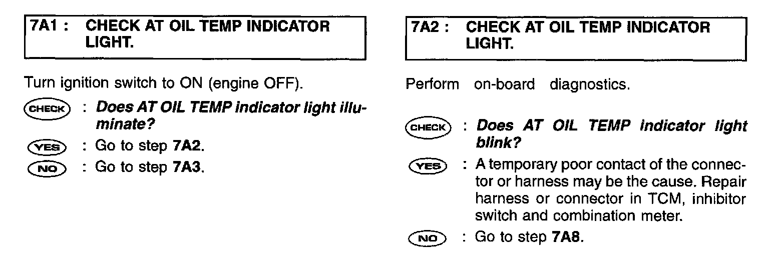 A/T OIL TEMP INDICATOR LIGHTSteps 7A1 - 7A2: