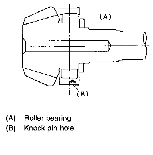 NOTE: When installing roller bearing, note its directions (front and rear) because knock pin hole in outer race is offset.