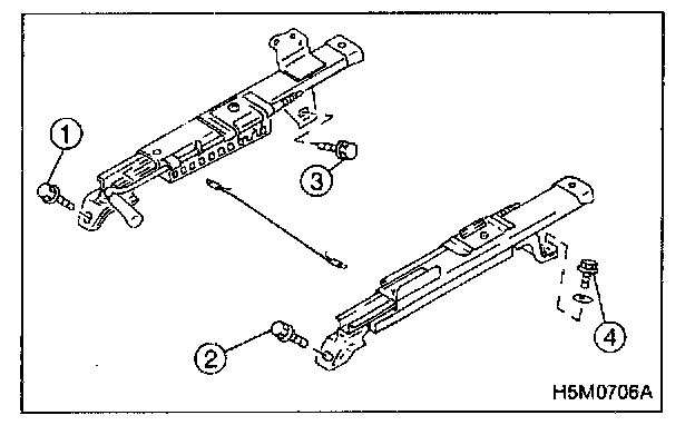 9. If any mechanism does not function properly, loosen bolts (3) and (4), slide seat as required, insert all lock plate pawls into holes in slide rail brackets, and tighten bolts (3) and (4) in that order.