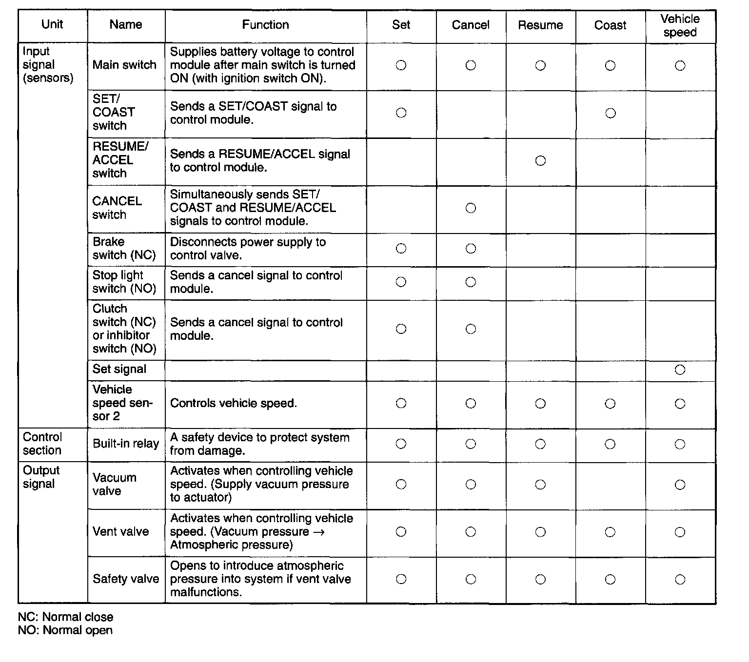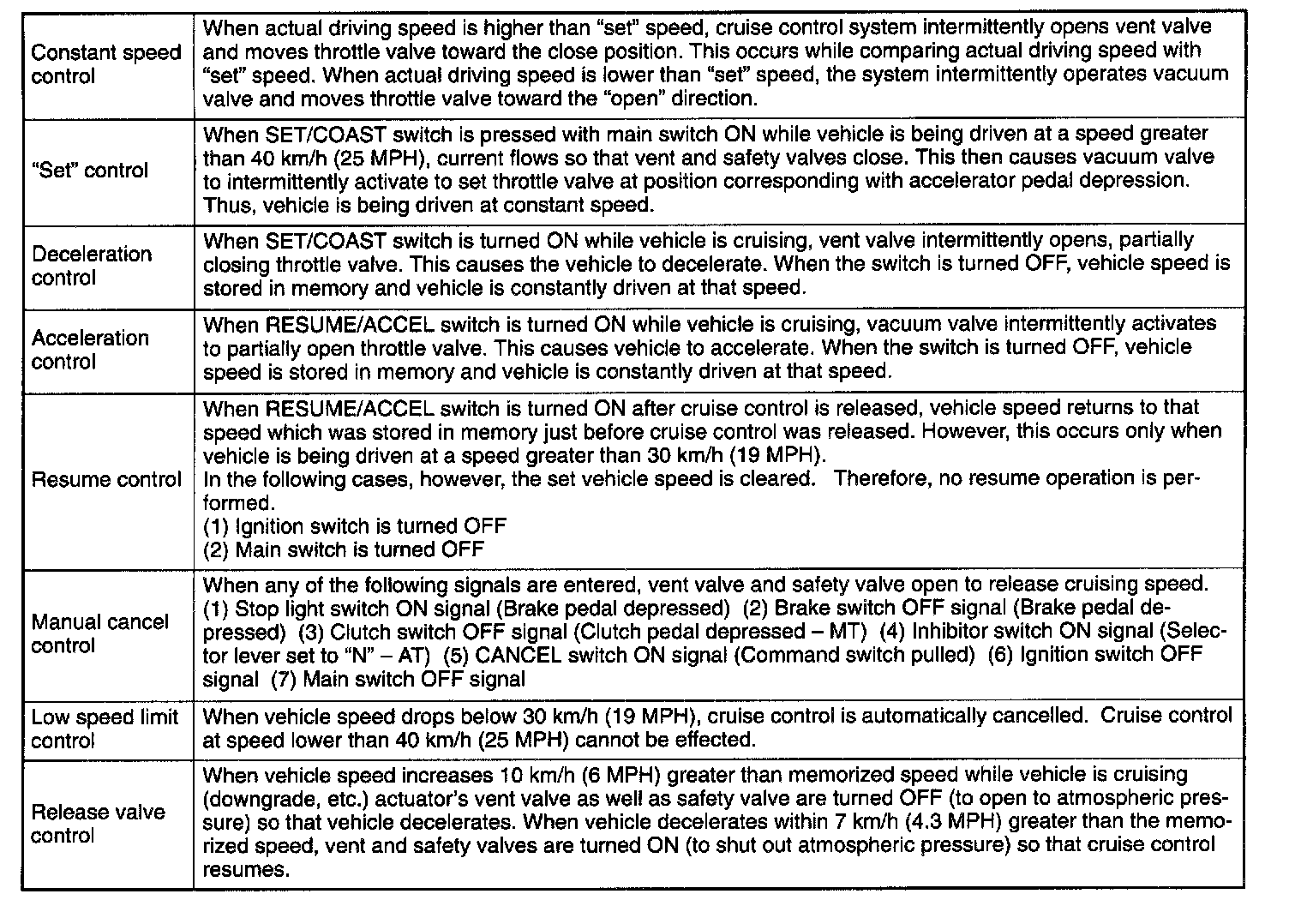 - The cruise control module compares the actual vehicle speed detected by feedback signals from the speed sensor 2 (MT) or TCM (AT) with the speed set in the memory memorized when the set switch was turned on.