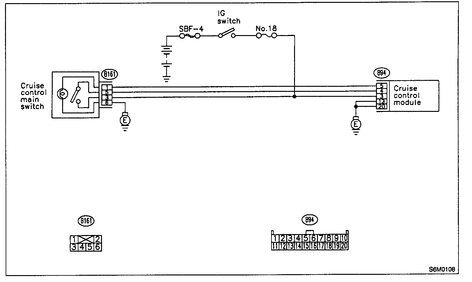 NOTE: Depress cruise control main switch with fingers while measuring voltage between (B161) No. 5 and chassis ground.
