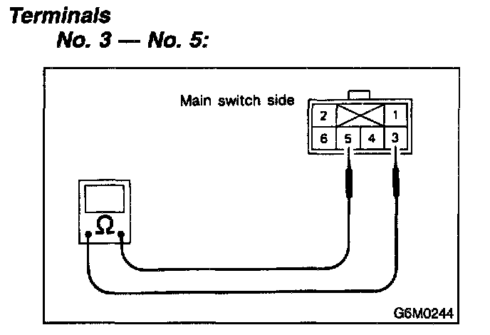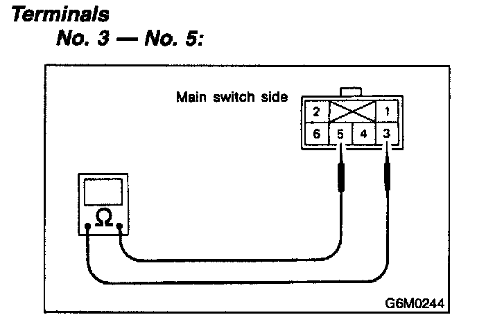 Measure resistance between cruise control main switch terminals.