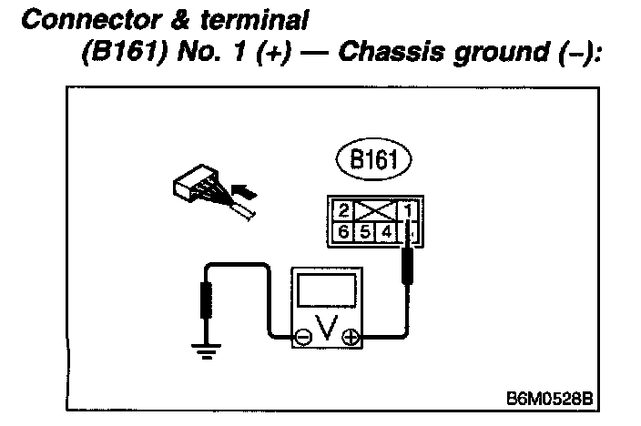 3. Measure voltage between cruise control main switch connector and the chassis ground.