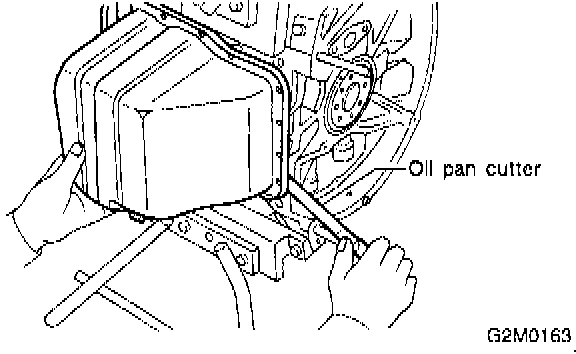 3. Insert a oil pan cutter blade between cylinder block-to-oil pan clearance and remove oil pan.