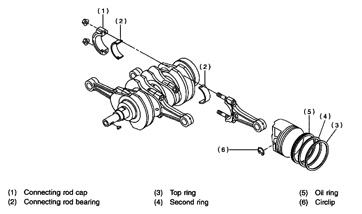 CAUTION: Arrange removed connecting rod, connecting rod cap and bearing in order to prevent confusion.