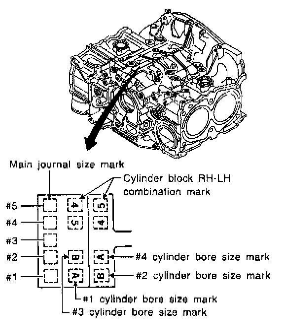 1. The cylinder bore size is stamped on the cylinder block's front upper surface.