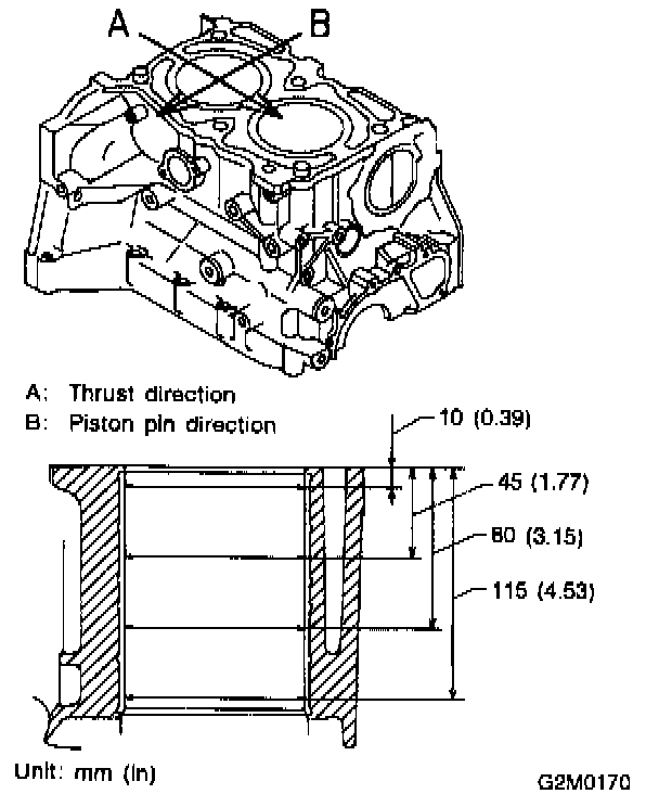 1. If the value of taper, out-of-roundness, or cylinder- to-piston clearance measured exceeds the specified limit or if there is any damage on the cylinder wall, rebore it to use an oversize piston.