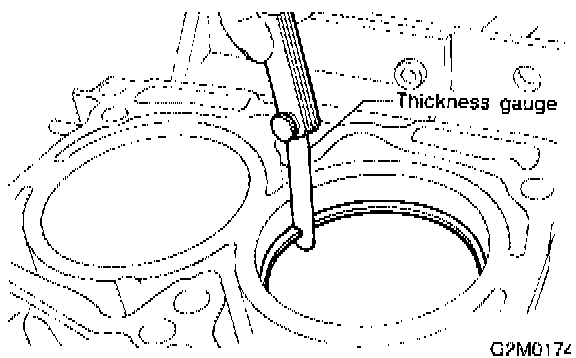 2. Squarely place piston ring and oil ring in cylinder, and measure the piston ring gap with a thickness gauge.