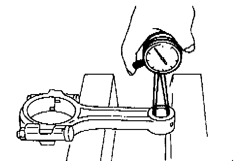 2. Check for bend or twist using a connecting rod aligner. Replace connecting rod if the bend or twist exceeds the limit.