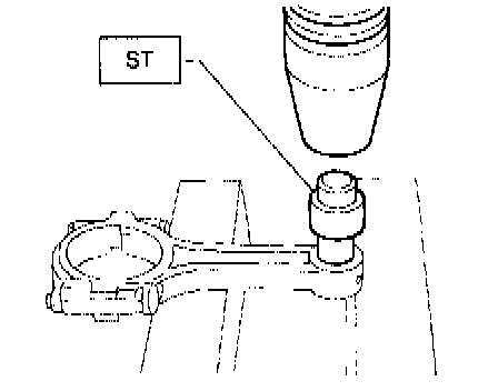 2. Press bushing with ST after applying oil on the periphery of bushing.