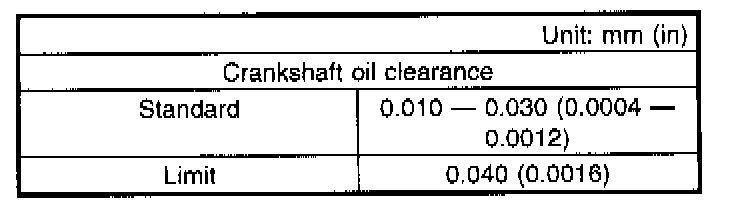 Crankshaft bend limit: 0.035 mm (0.0014 inch)