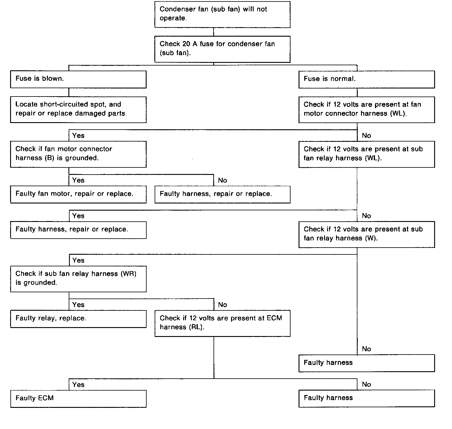 Condenser Fan (Sub Fan) Diagnosis (I):