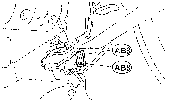 3. Remove lower cover. Disconnect airbag connector (AB3) and (AB8) below steering column.