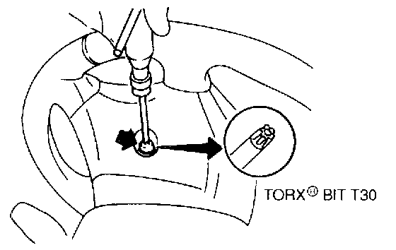 5. Set front wheels in straight ahead position. Using T30 TORX� bit, remove two TORX(r) bolts.