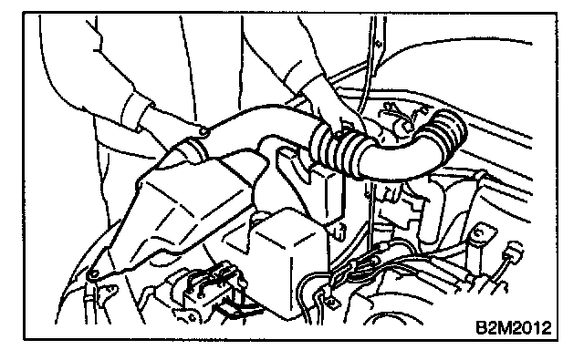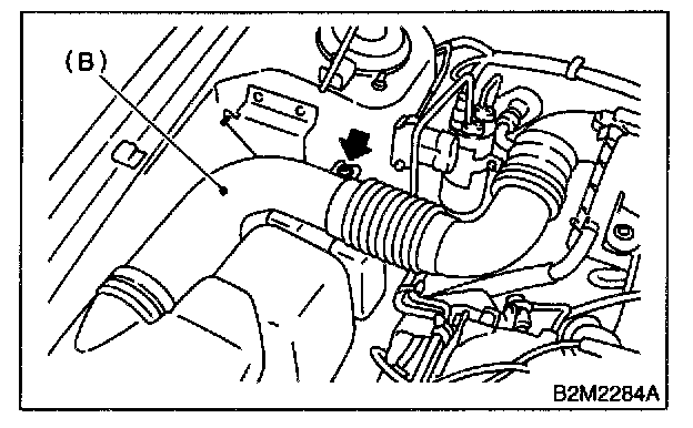 2. Remove bolt which installs air intake duct (A) on the front side of body.