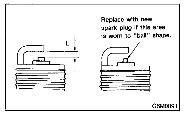 After cleaning spark plugs, recondition firing surface of electrodes with file. Then correct the spark plug gap using a gap gauge.