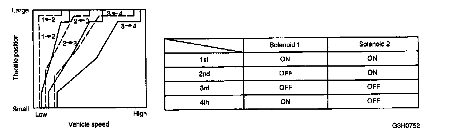 ^ Control module activates both solenoids 1 and 2 in response to throttle and vehicle speed signals.