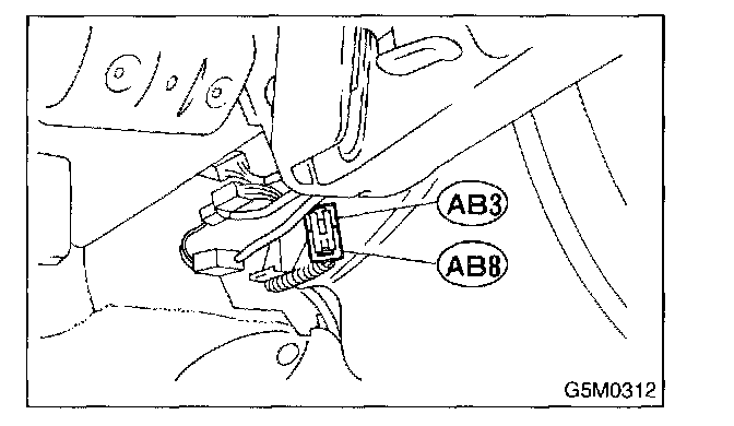 4. Disconnect airbag connector (AB3) and (AB8) below steering column.