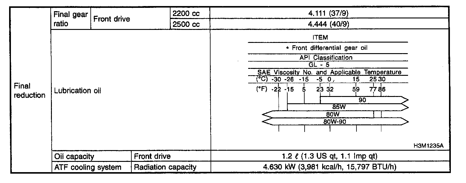 4-spd A/T, Transmission Final Reduction Service Data: