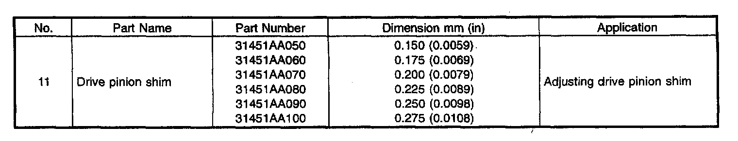4-spd A/T, Transmisssion Drive Pinion Shim:
