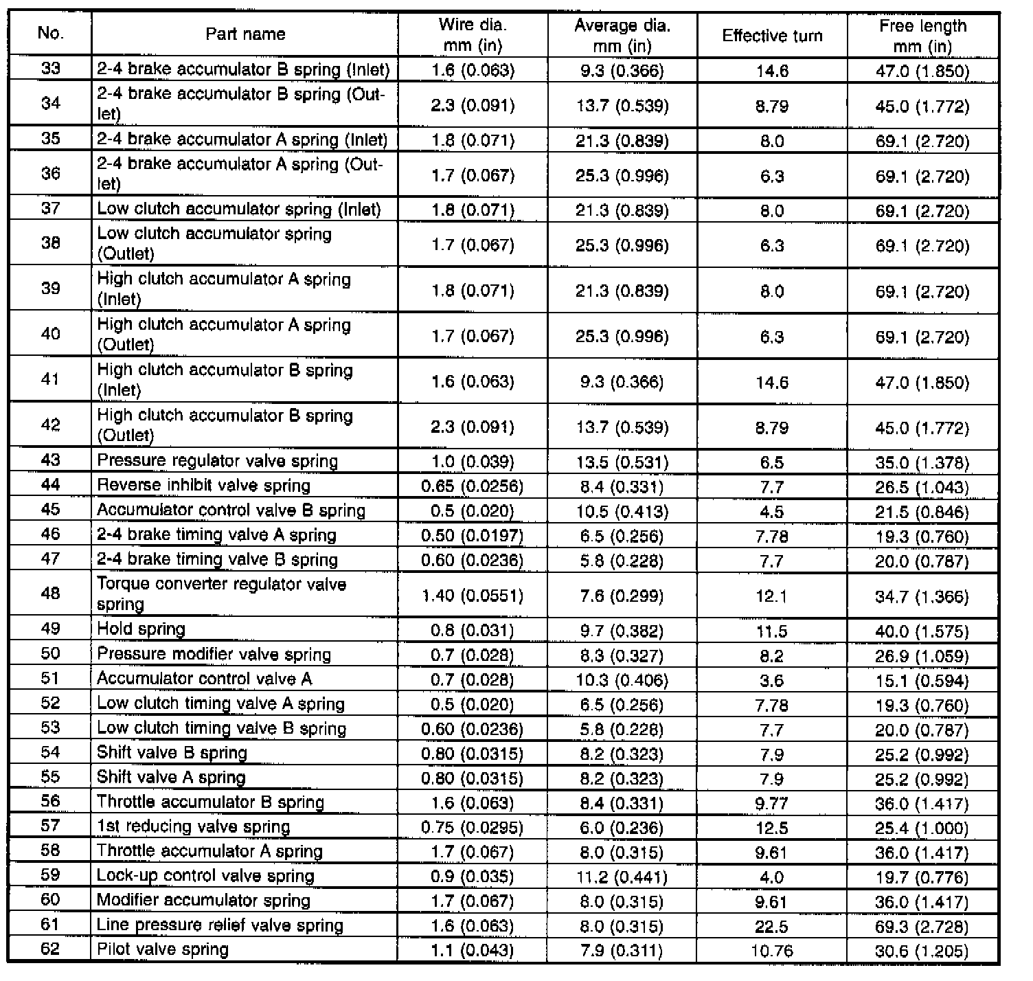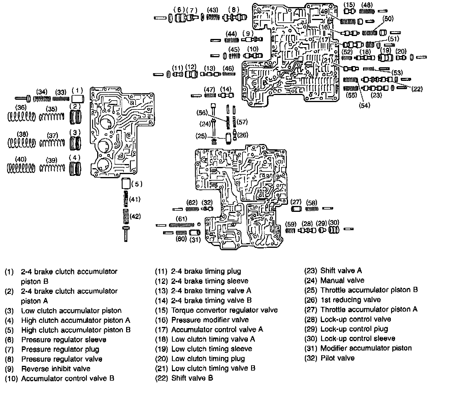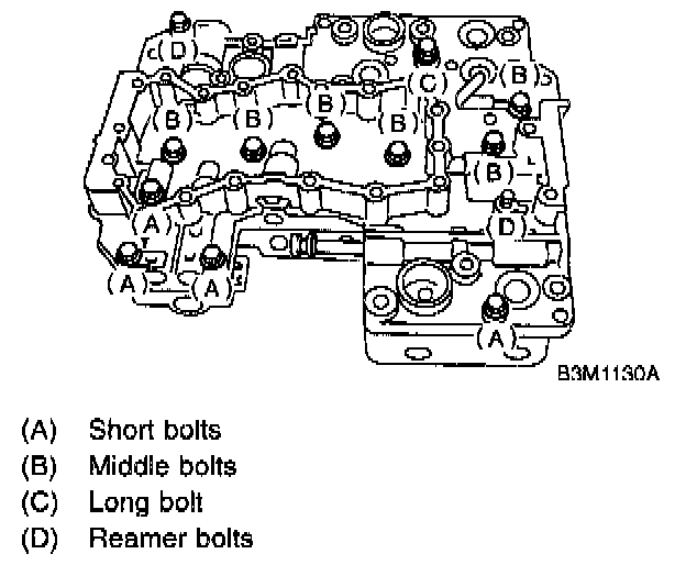 A: PrecautionThe control valve is composed of parts which are accurately machined to a high degree and should be handled carefully during disassembly and assembly. As these parts are similar in shape, they should be arranged in neat order on a table after disassembly so that they can be easily installed to their original positions. Spring loaded parts should be also handled carefully, as springs may jump out of place when the parts are disassembled or removed. Extreme care should be taken so as not to drop valves on the floor. Before assembling, the parts and valves should be dipped in a container filled with the ATF. Make sure that the valves are clean and free from any foreign material before assembly. Torque specifications should also be observed.