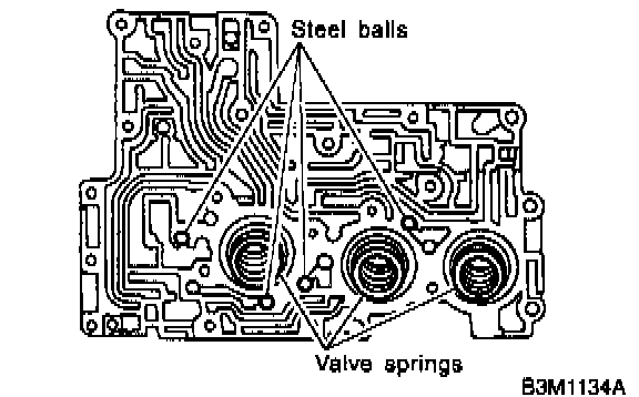 1. Install accumulator pistons, valve springs and steel balls to upper valve body.