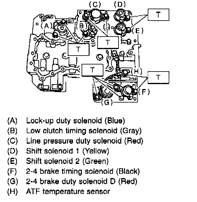 2. Remove the duty solenoid S. solenoids and sensor from the lower valve body.