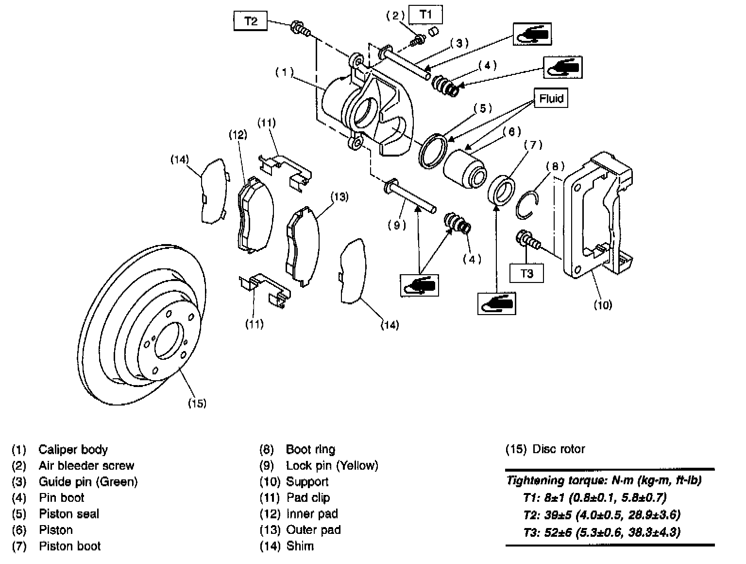 NOTE: If it is difficult to push piston during pad replacement, loosen air bleeder to facilitate work.