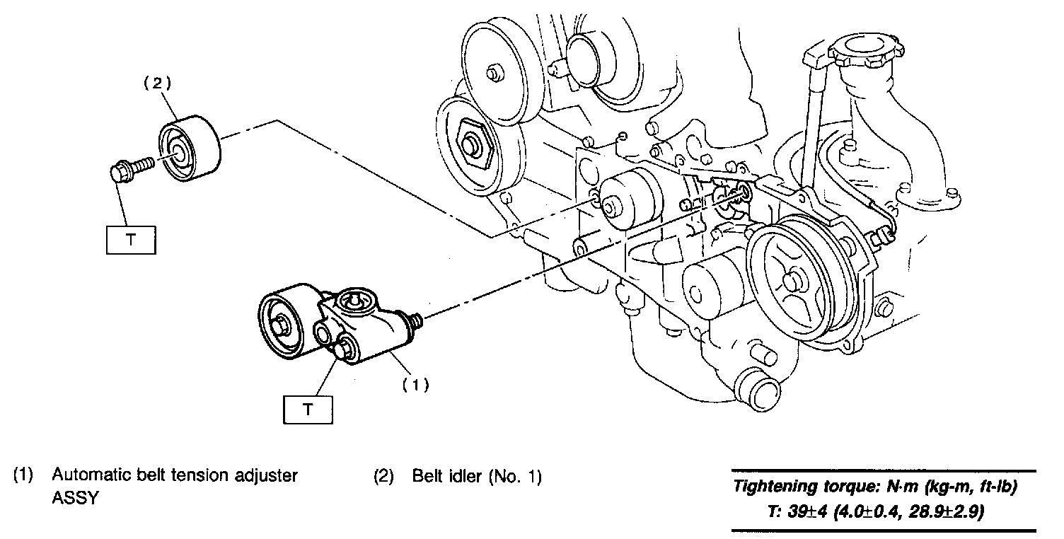 2. Install automatic belt tension adjuster assembly.