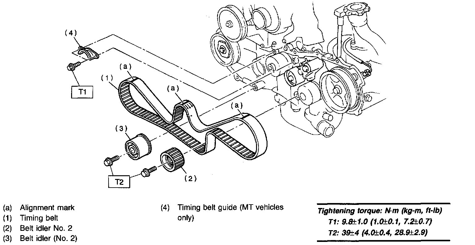 1. Remove timing belt guide. (MT vehicles only)
