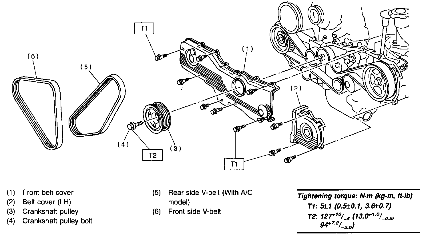 1. Remove A/C belt. (With A/C model)