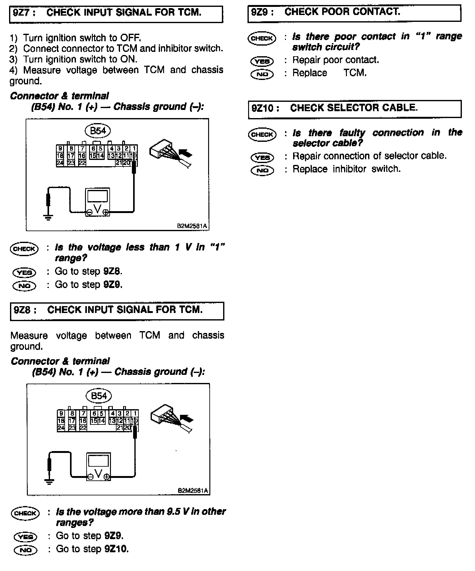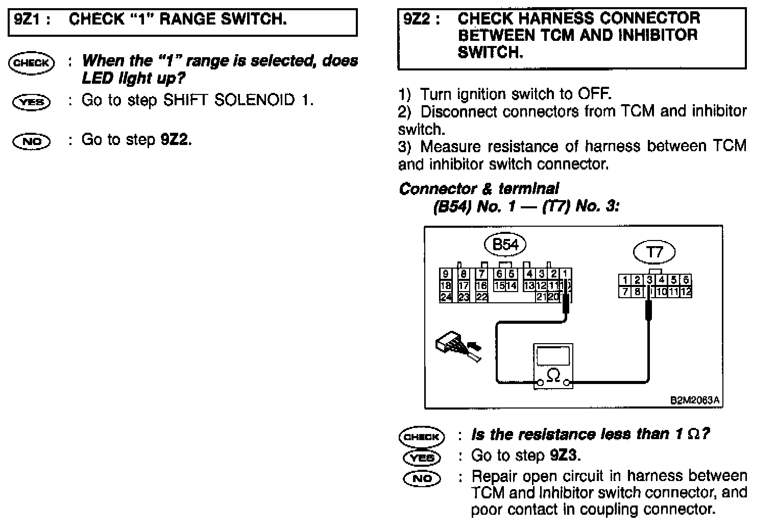 CHECK "1" RANGE SWITCH.DIAGNOSIS: Input signal circuit of "1" range is open or shorted.