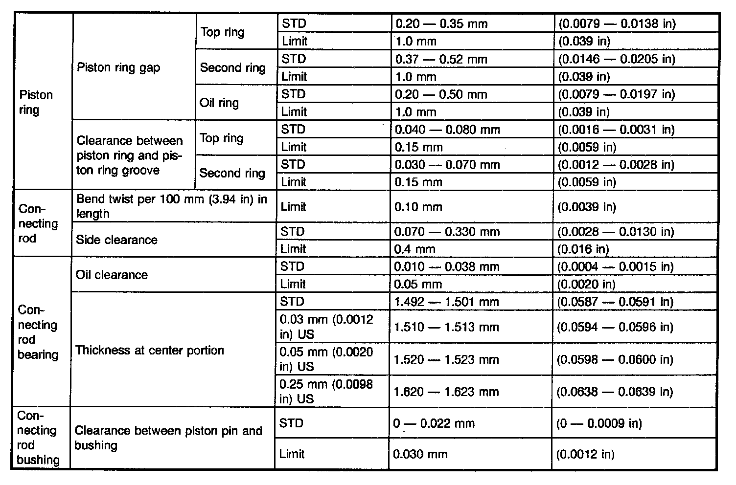 STD: Standard, I.D.: Inner Diameter, O.D.: Outer Diameter, OS: Oversize, US: Undersize
