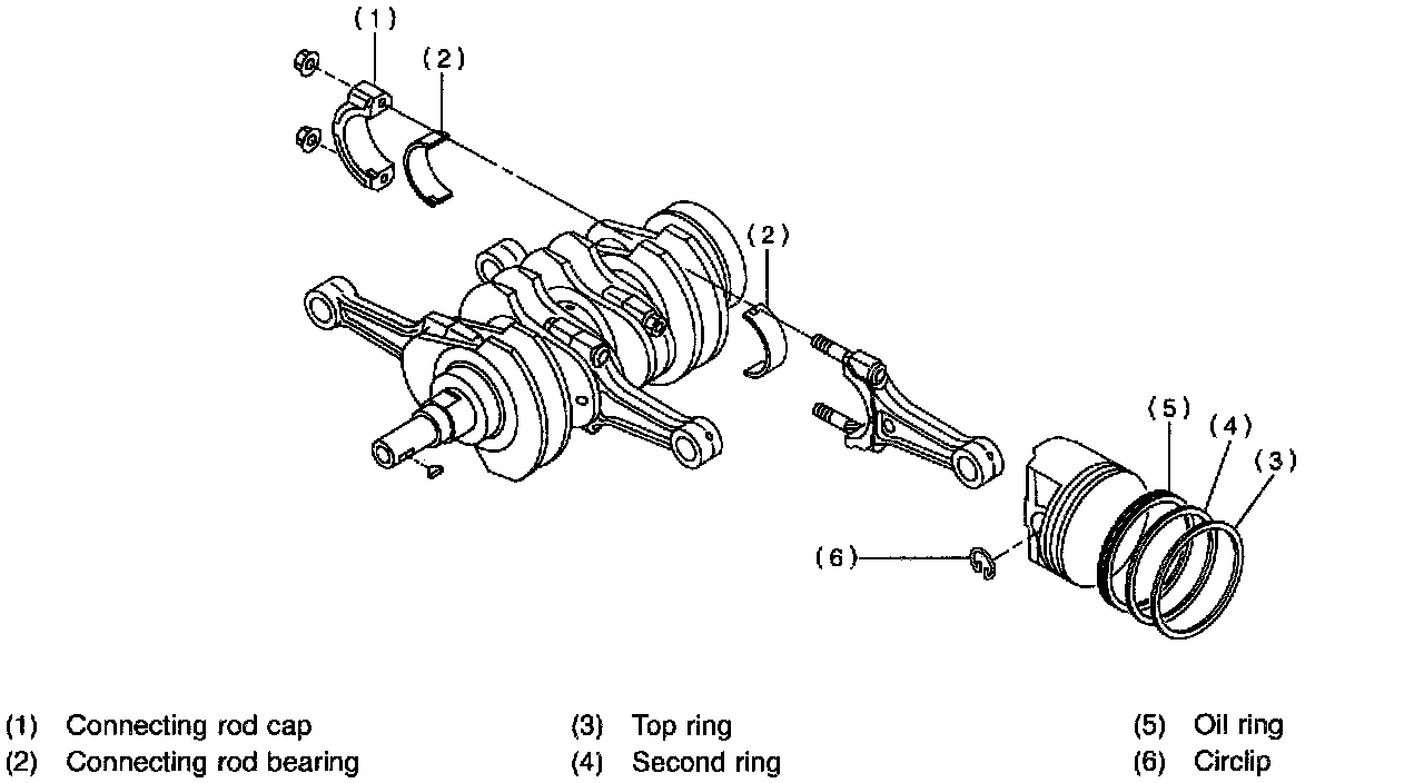CAUTION: Arrange removed connecting rod, connecting rod cap and bearing in order to prevent confusion.