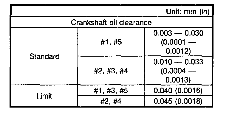 Crankshaft bend limit: 0.035 mm (0.0014 inch)