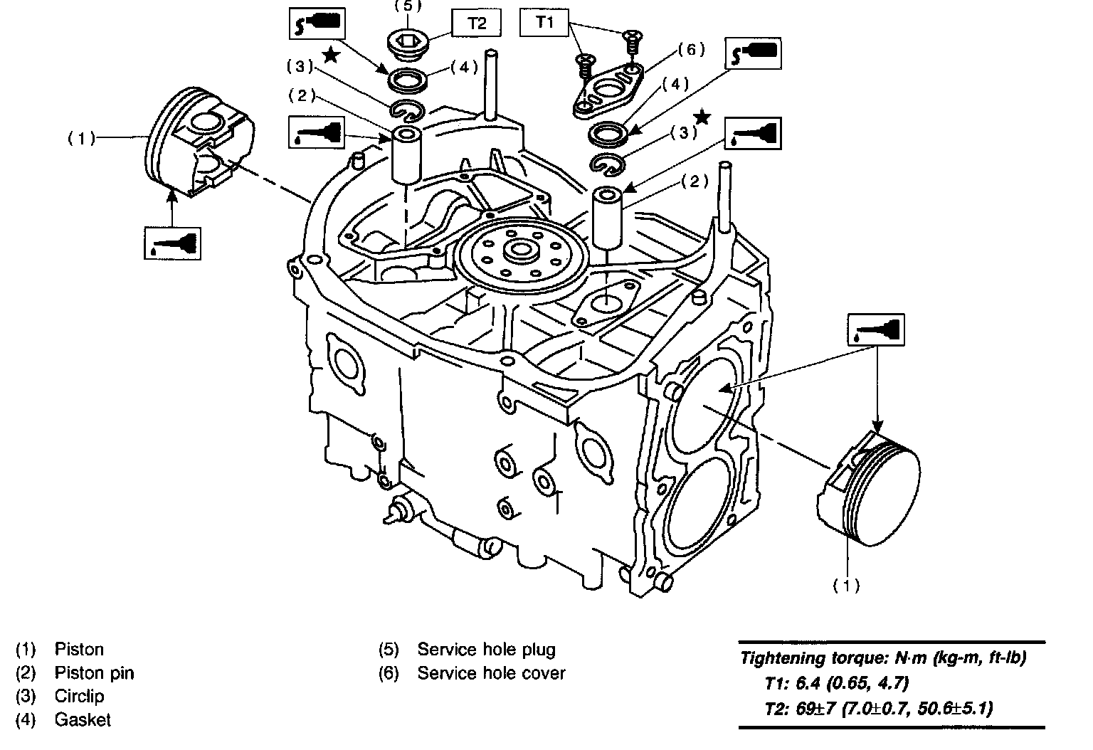 CAUTION: Be careful not to confuse original combination of piston, piston pin and cylinder.