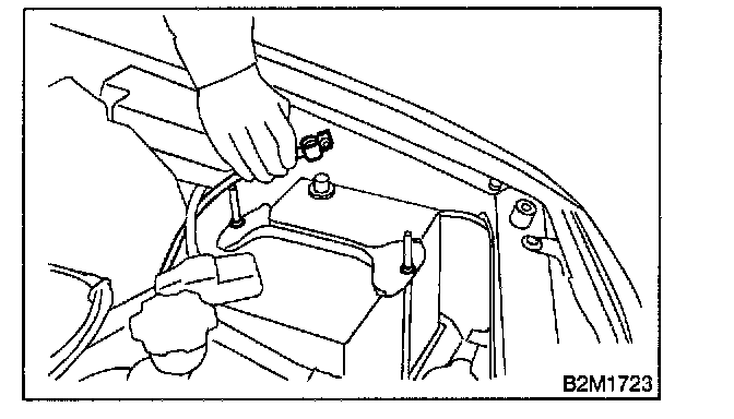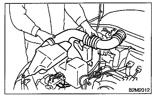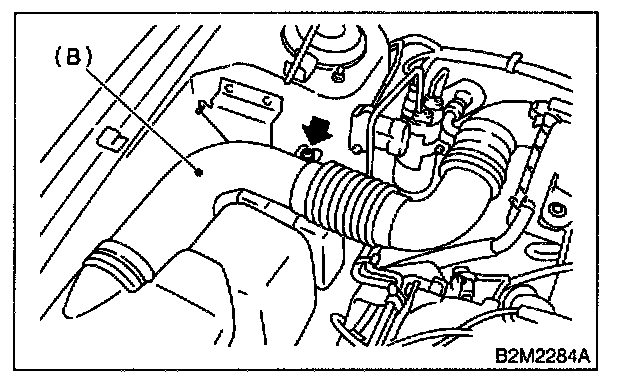 2. Remove bolt which installs air intake duct (A) on the front side of body.