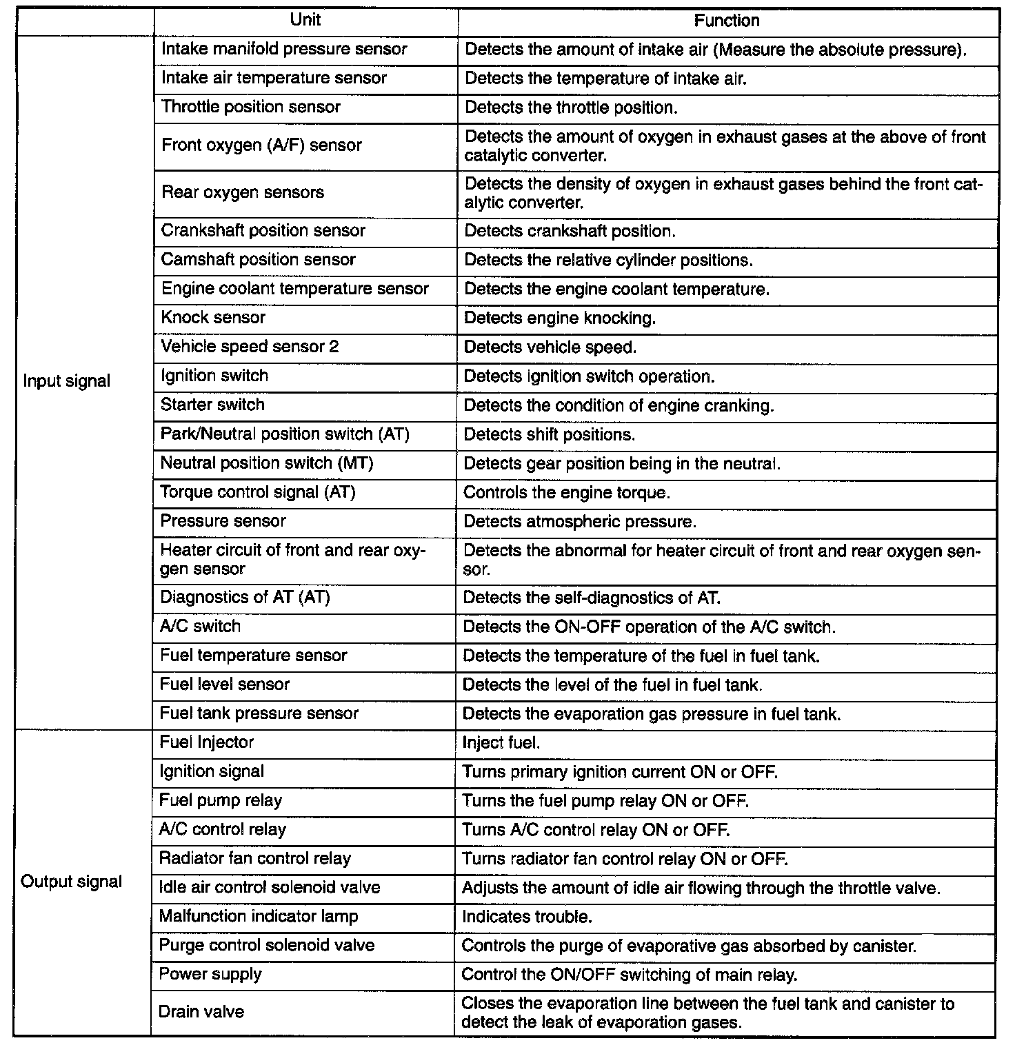 Input and Output Signals