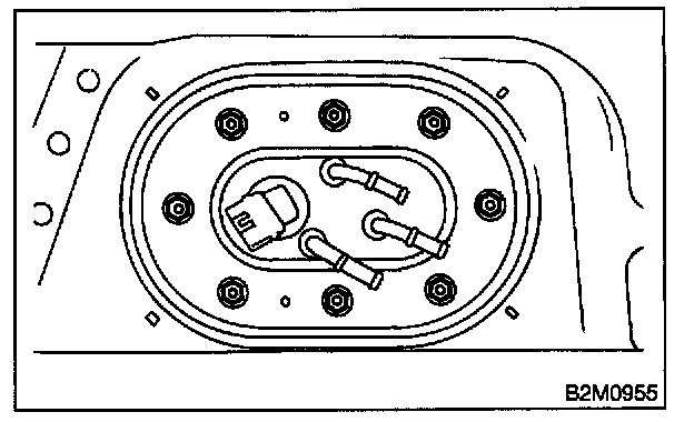 5. Remove nuts which install fuel pump assembly onto fuel tank.