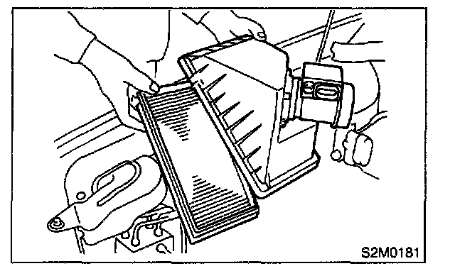 2. Loosen clamps which connect air intake duct to air intake chamber and mass air flow sensor.
