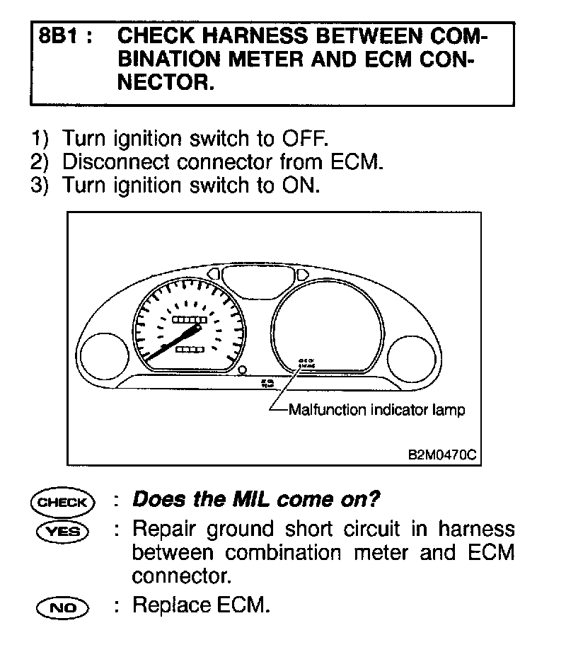 CHECK ENGINE MALFUNCTION INDICATOR LAMP (MIL) DOES NOT COME ONDIAGNOSIS: