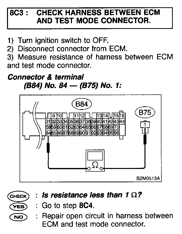 - Even though test mode connector is disconnected, MIL blinks at a cycle of 3 Hz when ignition switch is turned to ON.