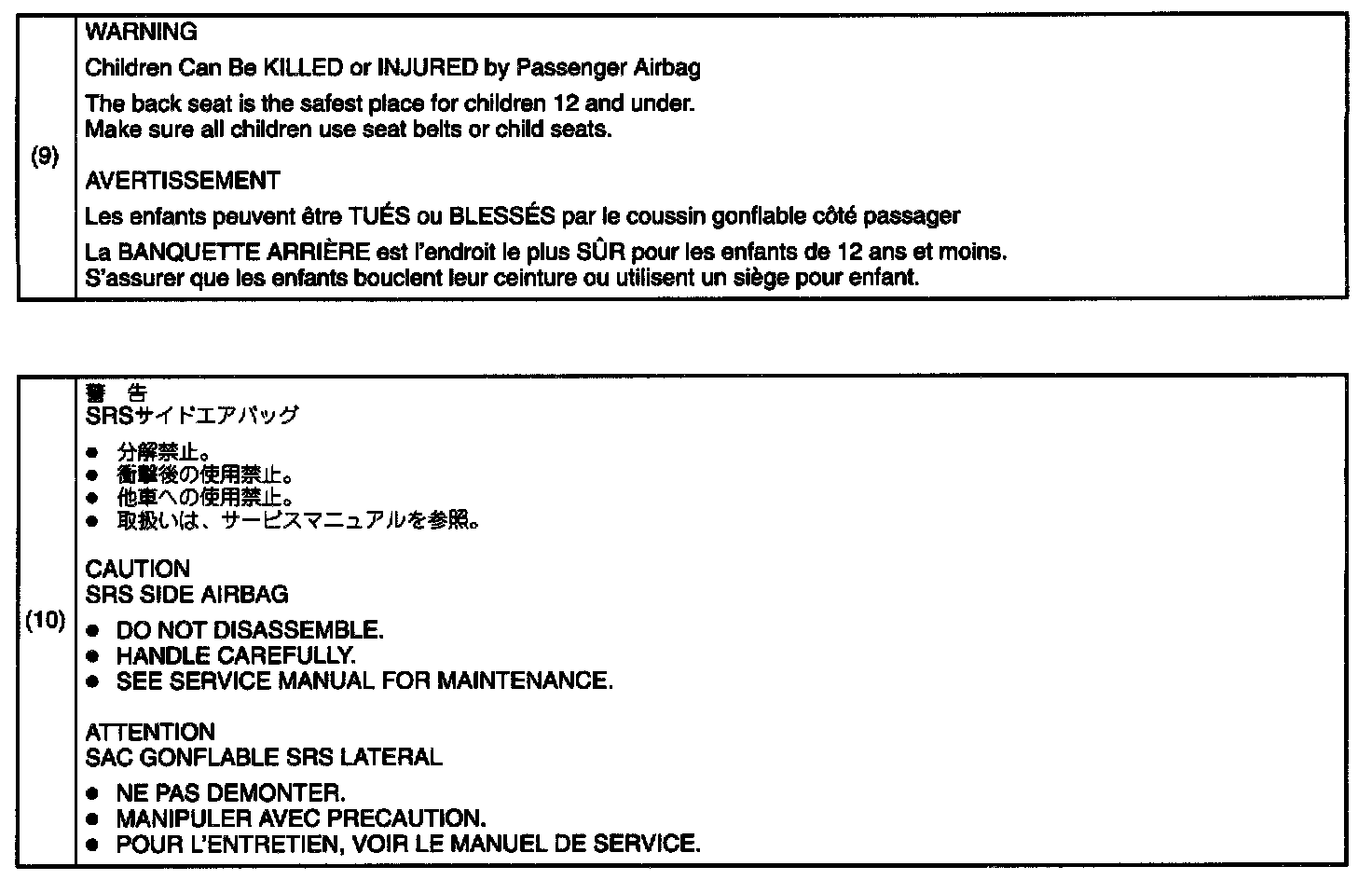 WARNING, CAUTION LABELS AND LOCATIONS