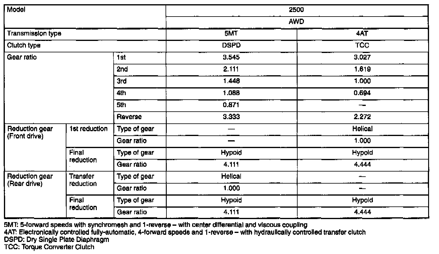 Legacy Outback AWD F4-2.5L DOHC