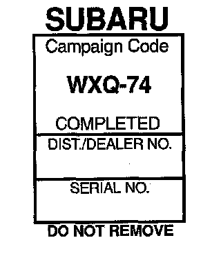 Each vehicle corrected in accordance with the instructions outlined in this bulletin will require a "Recall Campaign" completion label. Each label provides a space to include the dealer code of the dealer performing the recall campaign. The information may be inserted on the completion label with a typewriter or permanent ink pen. After completing the information on the label, attach the label on the upper radiator cowl.