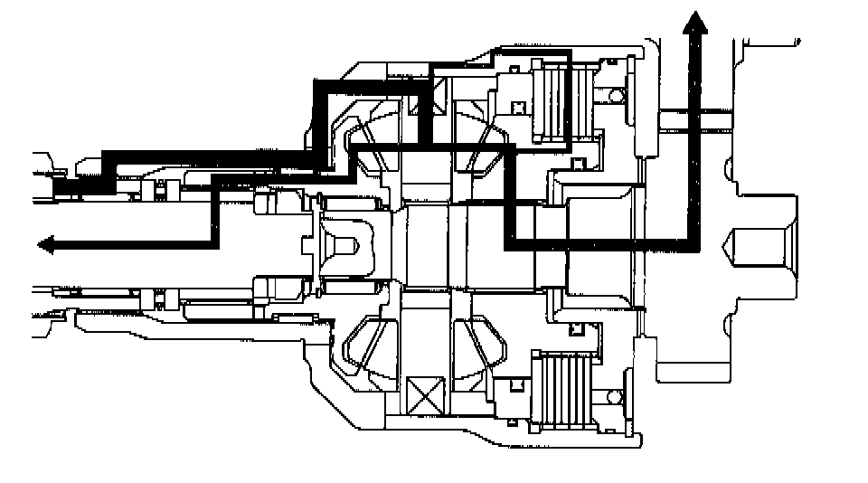 The "hump" phenomenon eliminates the rotating speed difference between the center differential case and hub (which results in a state similar to "direct coupling"). This in turn decrease internal pressure and temperature. The viscous coupling returns to the normal operation. (The "hump" phenomenon does not occur under normal operating conditions.)