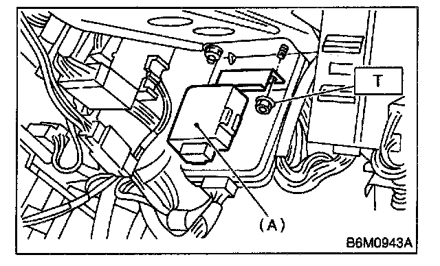 3. Remove keyless entry control module (A) while disconnecting connector.