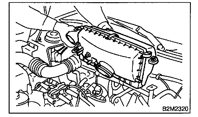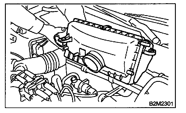 2. Remove air cleaner assembly and air intake duct (A) and (B) as a unit. (2200 cc California spec. vehicles)