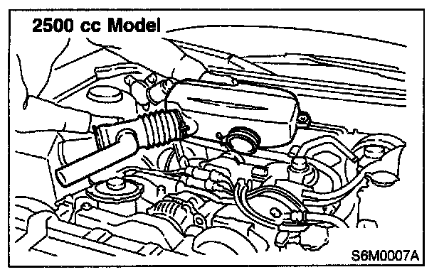 3. Remove air intake chamber and air intake duct as a unit. (Except 2200 cc California spec. vehicles and 2500 cc Model)